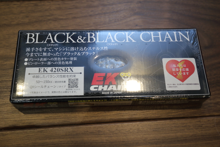 今回はEKチェーン(江沼チェーン)のQXリングチェーンタイプにしてみました。