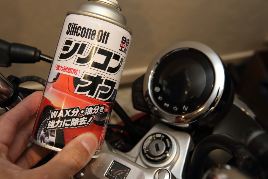 シリコンオフで油取って、フキフキ。