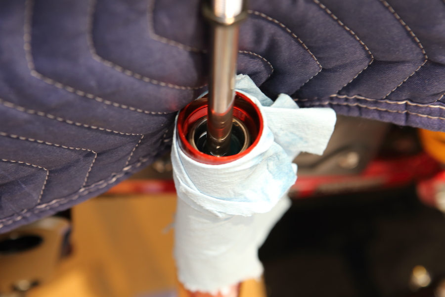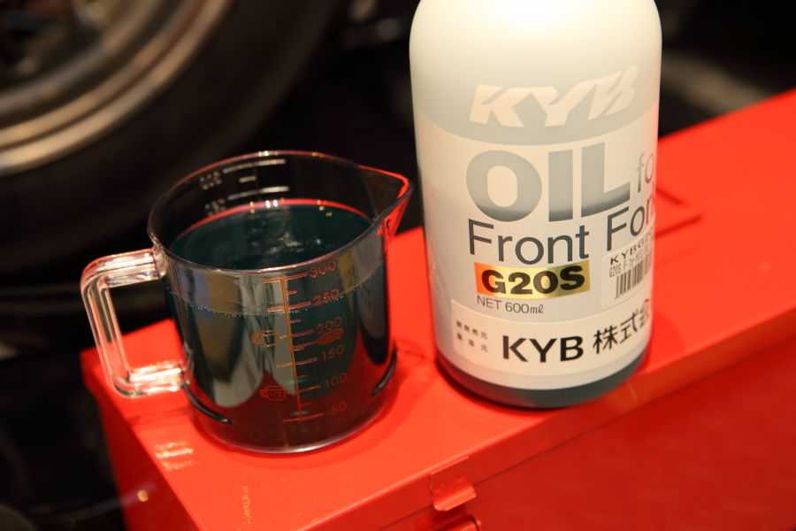 トップキャップを緩めて逆さにしてフォークオイルを抜きます。