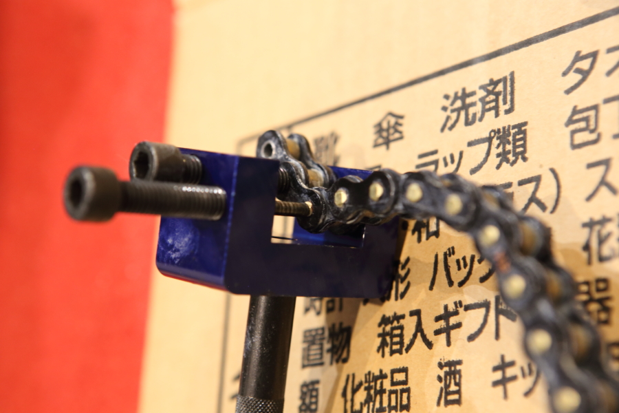 買ったチェーンが100コマですので、98コマにするためにチェーンカッターで2コマ取ります。