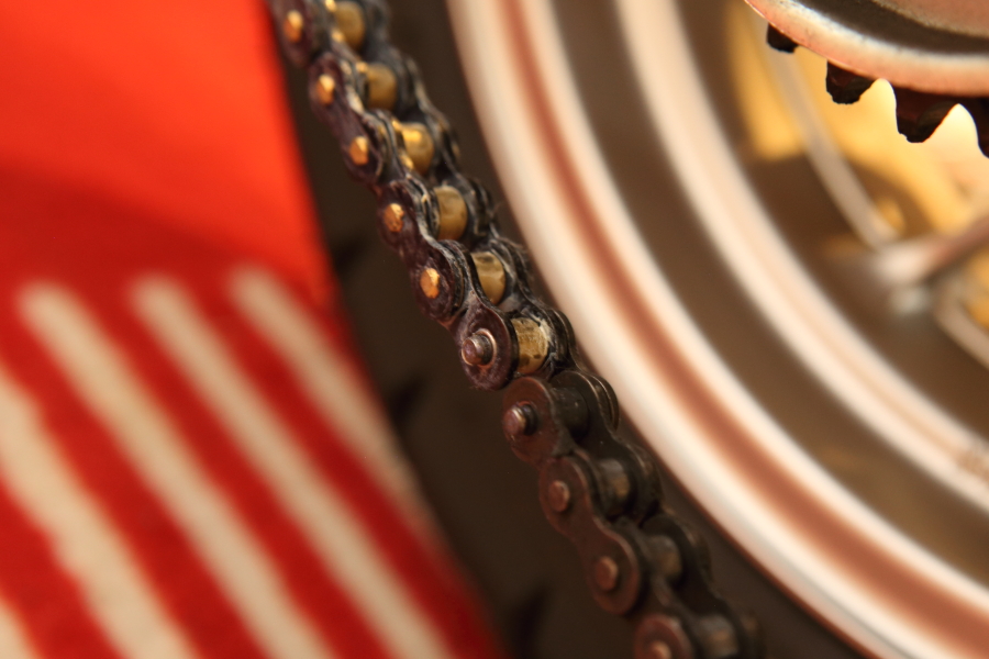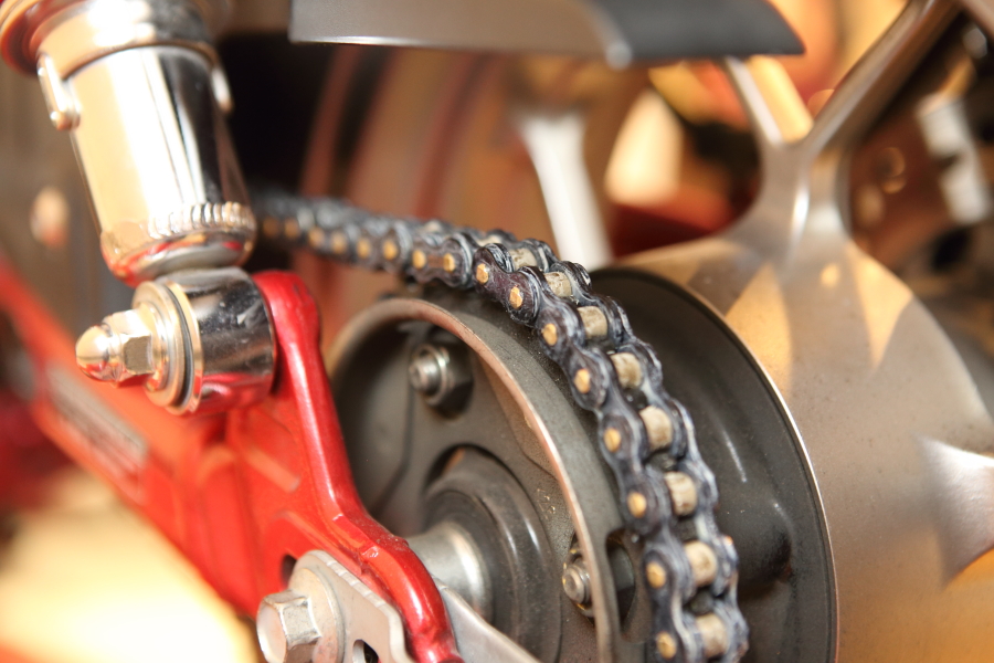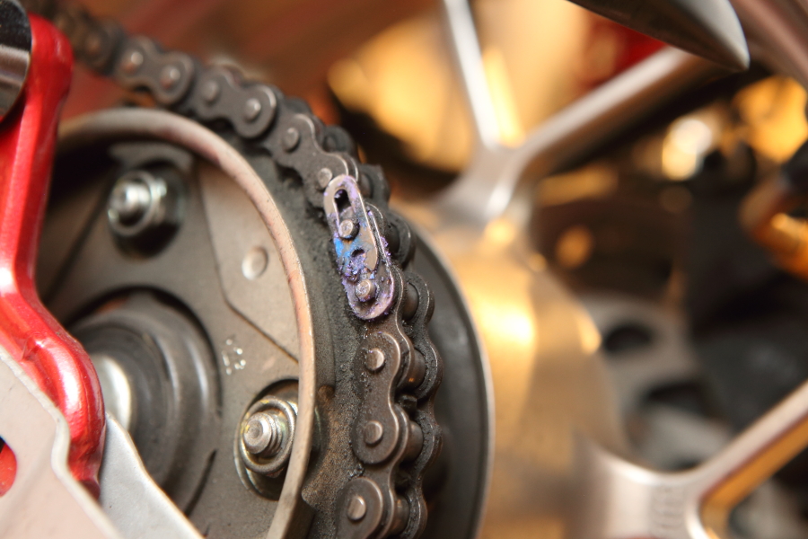 新しいチェーンを純正のチェーンに仮固定して、タイヤを回して一周させるとチェーンを掛けられます。