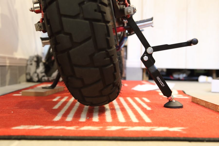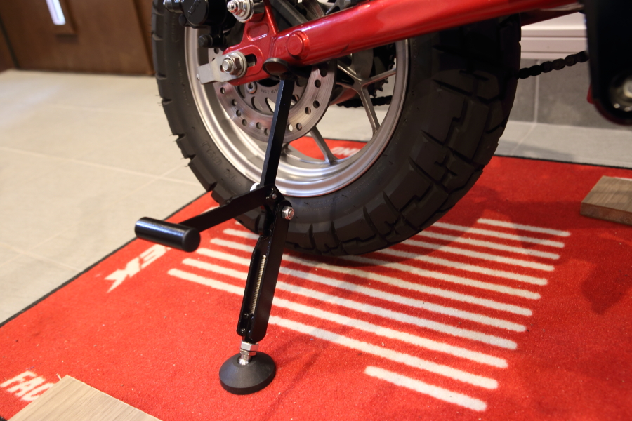 ちょ~便利な「スイングアームリフトスタンドを使って、リアタイヤを浮かせます。