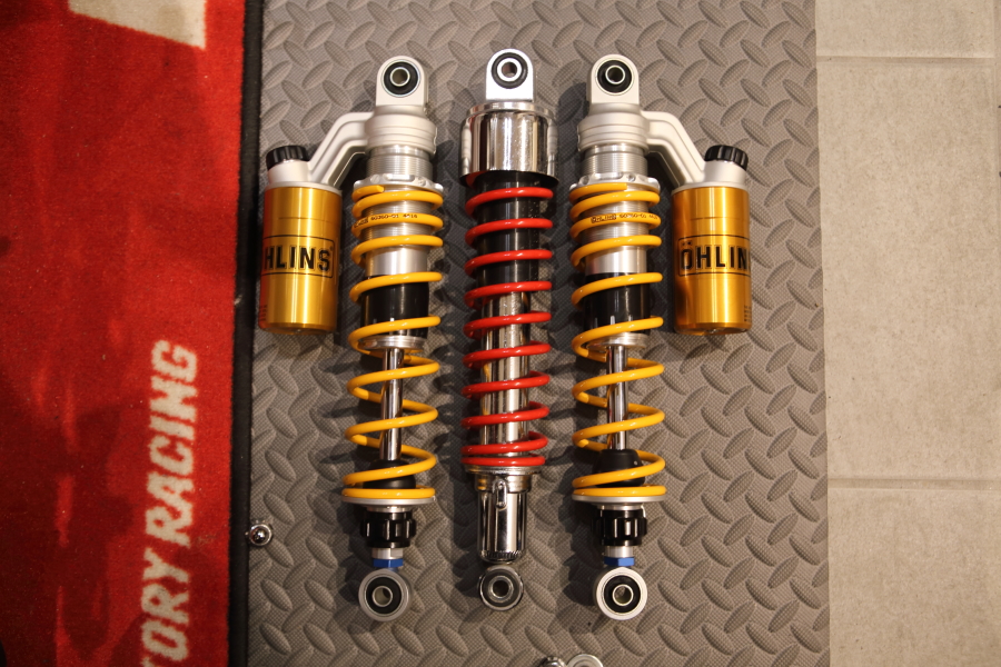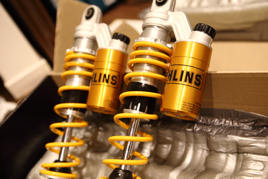 オーリンズのリアサスペンション、フルアジャスタブル・ツインショック!!