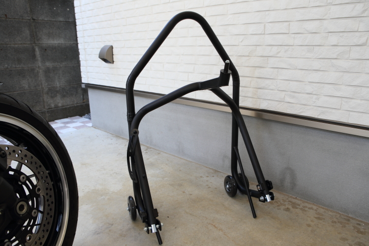 そこに27mmのカラーを装着したフロントスタンドを差し込みフロントアップします。