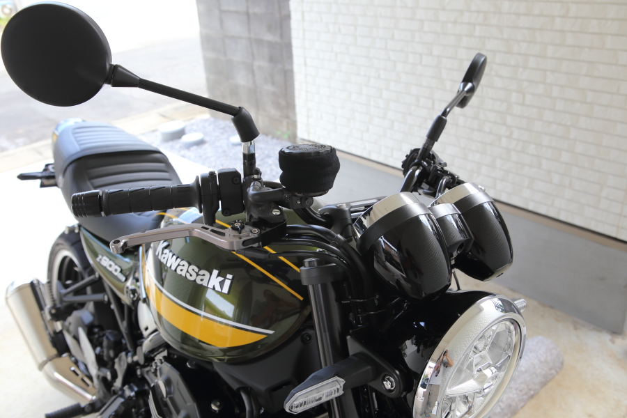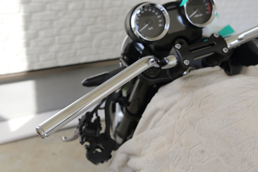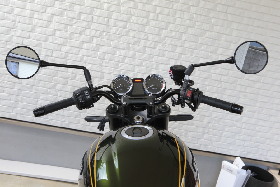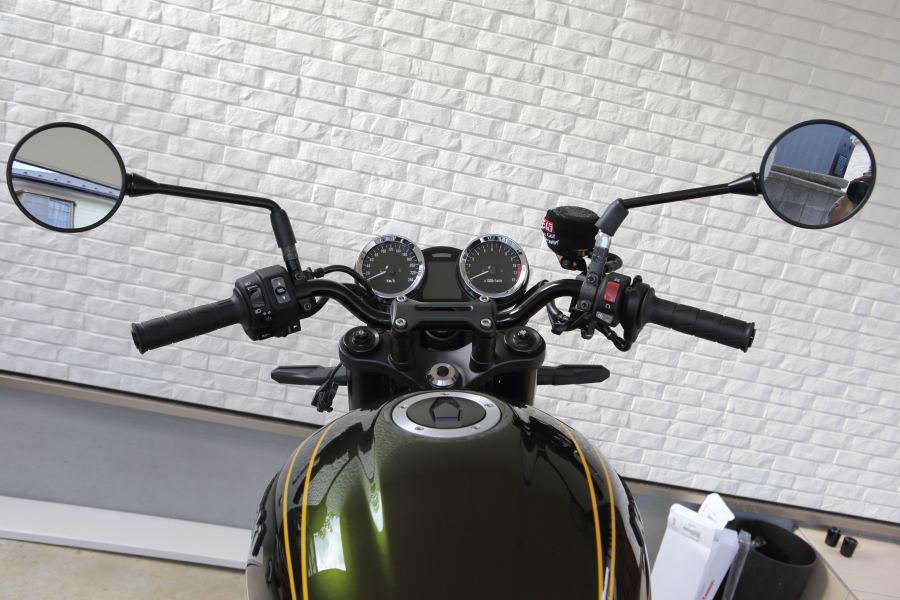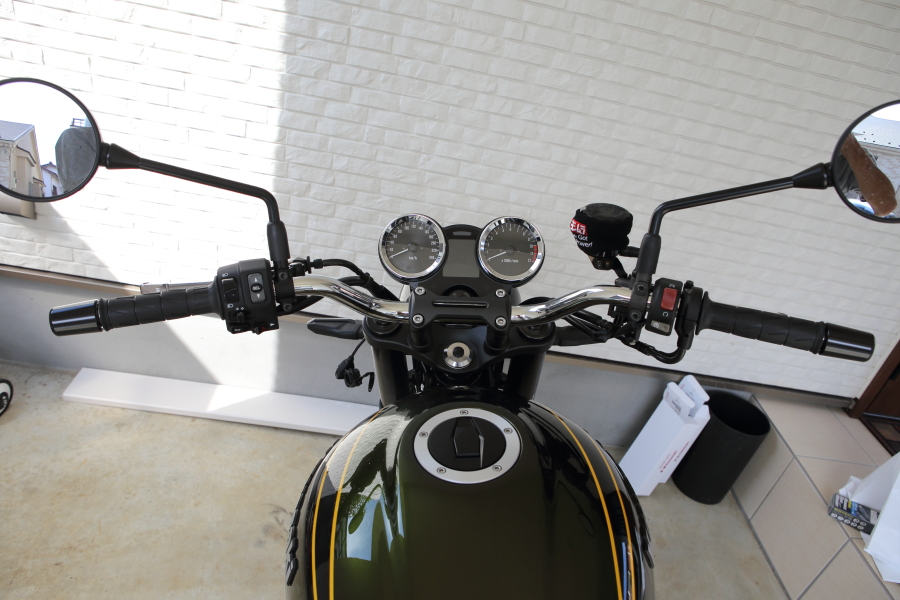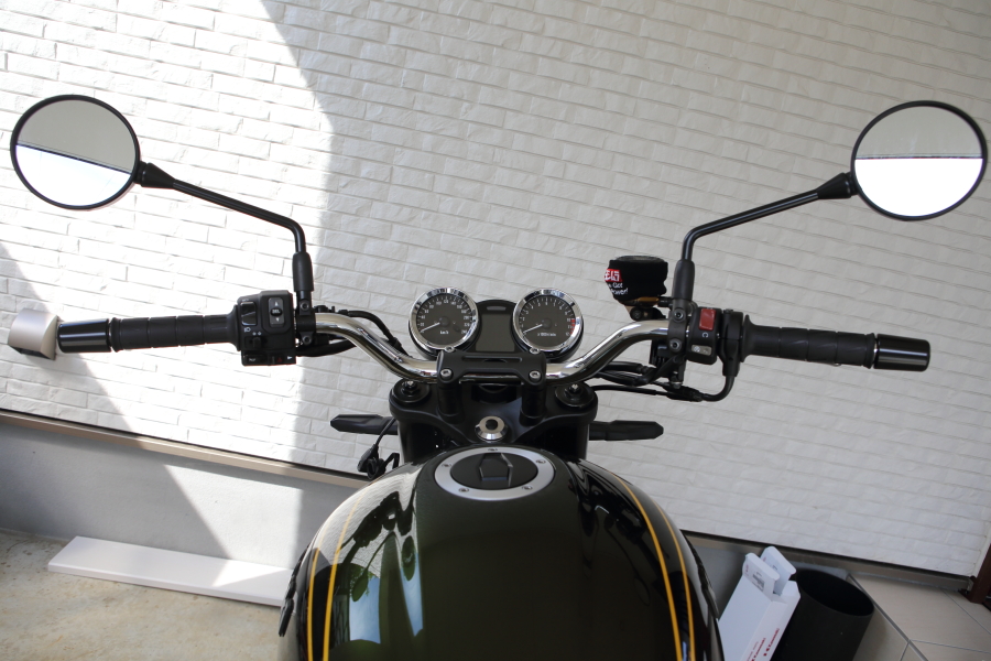 Z900RSの純正ハンドルは、横幅が広く、ライディングポジションも高いのでお尻が痛くなりがち。