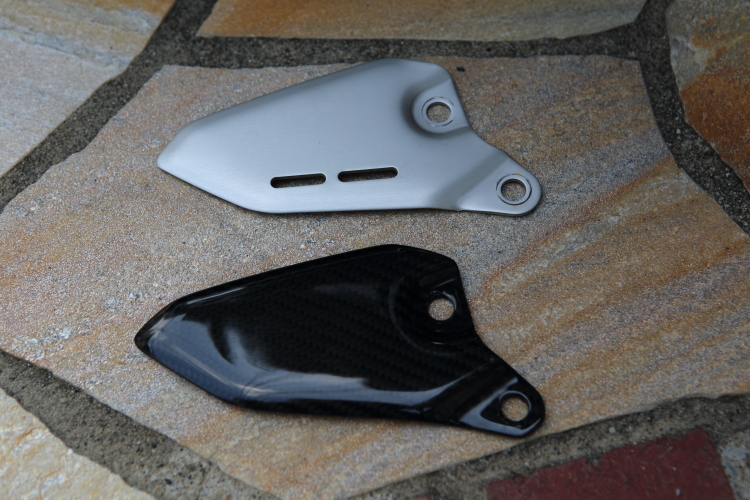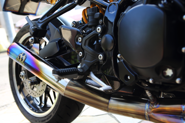 んで、もちろんリアショックはオーリンズなんですが、汚れや飛び石からガードしてくれるプレート!?が標準装備されているんですよ。しかも「OHLINS」のロゴ入り!